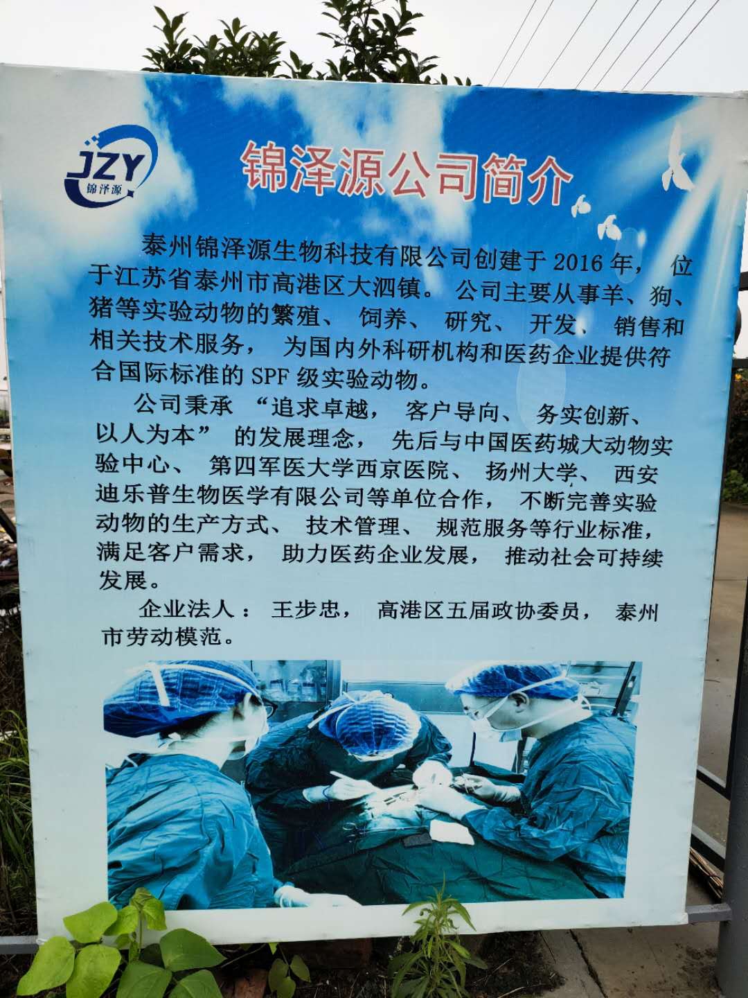 江蘇錦澤原生物科技有限公司創(chuàng)建于2016年,注冊資金1200萬元。公司主要從事羊、狗、豬等實驗動物的繁殖、飼養(yǎng)、研究、開發(fā)、銷售和相關(guān)技術(shù)服務(wù),為國內(nèi)外科研機構(gòu)和醫(yī)藥企業(yè)提供符合國際標(biāo)準(zhǔn)的SPF級實驗動物。